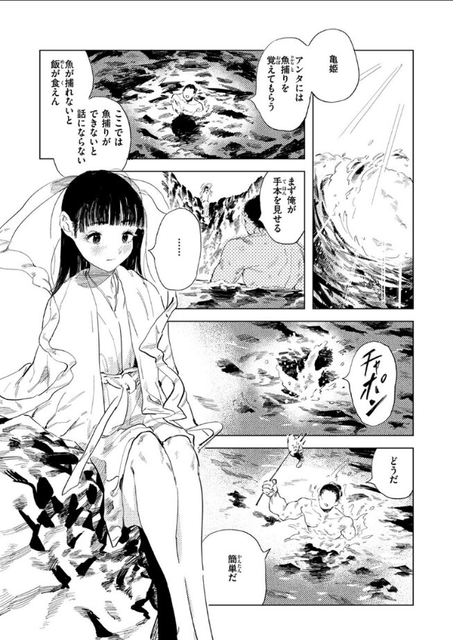 「一緒に行こう? 常世の国へ」退廃的な世界の中で艶めく、生々しいエロス。新進気鋭作家あすぜむ、濃密32P!漁師として生活する浦嶋子(うらしまこ)は、嵐の夜に亀姫(かめひめ)と出会った。共に生活を営むうちに、だんだん心も身体も近付いていく。幸せに暮らしていたある日、亀姫から「私の故郷なら、永遠に一緒に暮らせるよ」と言われ――