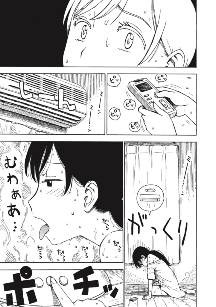 汗が滴る夏の日。エアコンが壊れ、肌を露わに扇風機に当たる人妻。同じく涼を求める男が部屋に入ってきて……。(単行本「ひとづま」収録作品)