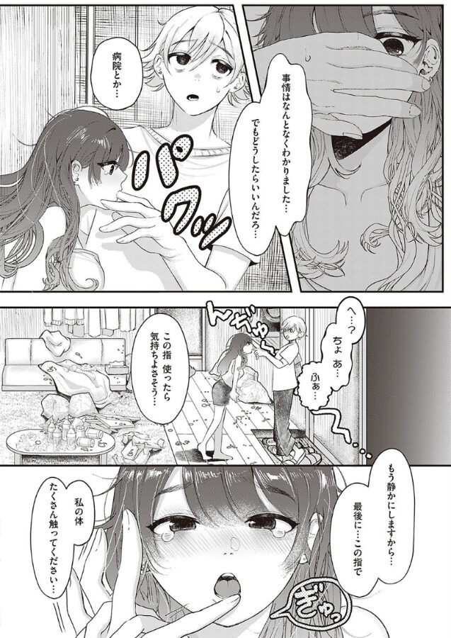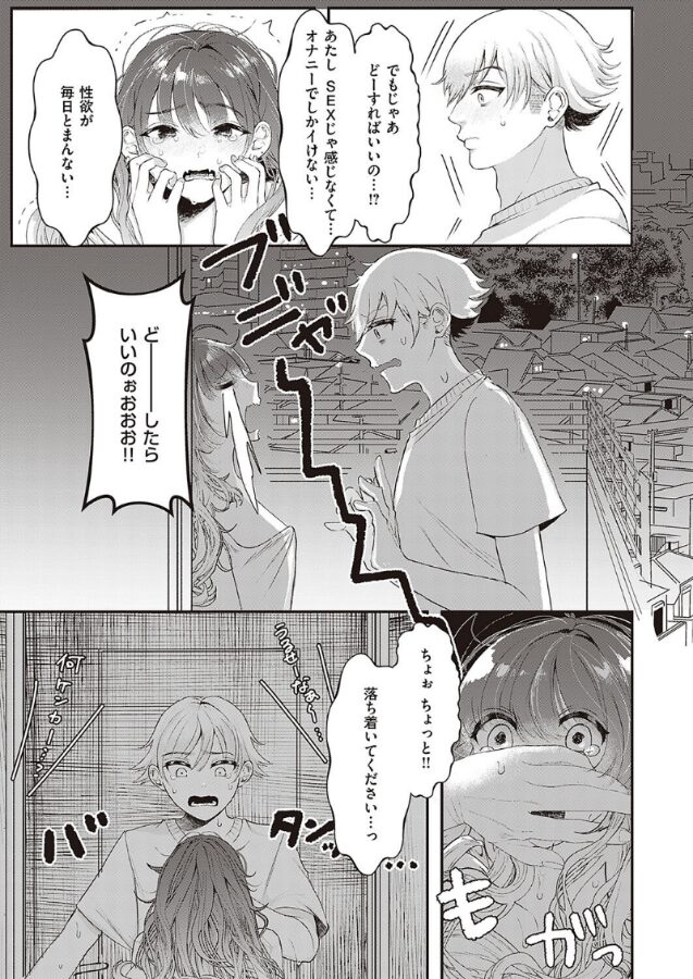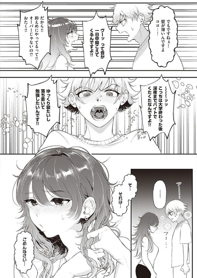 超安く借りられたアパートの部屋は、一日中バイブの音が鳴り響くワケあり物件だった――!不眠に悩まされた俺が、痺れを切らして騒音の元である隣の部屋に乗り込むと、意外にも巨乳で美人なお姉さんが出てきた!しかしそのお姉さん、逆ギレしたかと思えば「セックスで感じなくて性欲が止まらない」とついには泣き出してしまい…!!泣き喚く彼女をどうにか部屋に入れると、「この指気持ちよさそう」と俺の指を掴んで体を触ってほしいとおねだりされて…。叙情派マスター初登場の鬱ノ宮うかつ先生が描く、騒音も性欲も強すぎなお隣の美女と欲求不満解消セックス!
