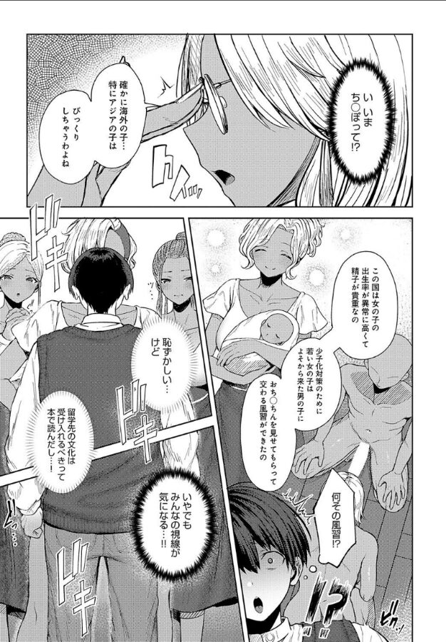 若い女性だらけの南の島に留学することになった僕。留学先の学校で女子に囲まれて戸惑っていると、褐色肌の地元女子・カミラが突然、「ほら! ち○ぽ出して!」と要求してきた。この島には、よそからきた男子は女子にち○ぽを見せ、交わるという独特の風習があったのだ! 風習に従ってち○ぽを出すと、カミラに人前でフェラをされ、そのままクラスメイトの前でイッてしまう–。その行為を見ていた他の女子たち、ニマやハナンもうっとり興奮状態♪ 二人も乱入してきて、南国娘たちと夢のようなハーレムSEXが始まる–!ハッピーセックスの伝道師・旅口工路先生が贈る、熱いトロピカル4Pハーレム体験♪