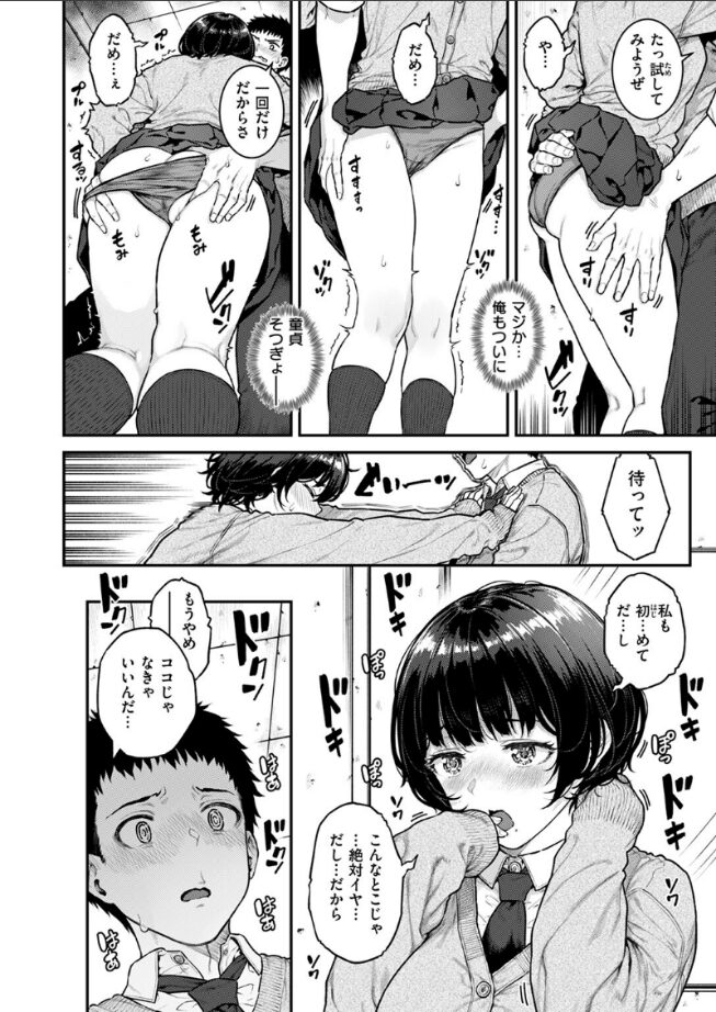 「あたし…まだイッてないからぁ」あだ名がパシリちゃんの仙羽(せんば)しおりと男子トイレで再会した助島泰平(すけじまたいへい)。相変わらずパシリちゃん全開で、独りで男子トイレの掃除をさせられているしおりを、軽口で心配する泰平。軽口ついでに、断れない性格のしおりに向かって「頼む仙羽! 俺の童貞もらってくれ! おまえしかいないんだよ!!」などと言ってみると、意外な反応が返ってきて……Noと言えない系ヒロイン全開のしおりと、お調子者の泰平が繰り返す、時も場所も選ばないおサルさんのような性事情。そんな2人の意外な顛末とは……?