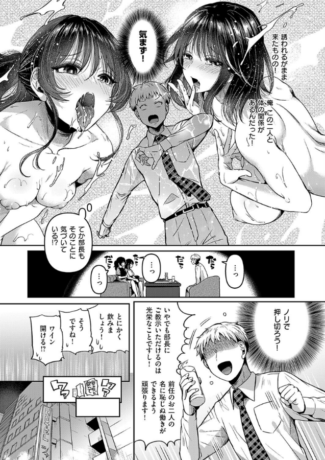 新しい上司に同行することになった仁保と、彼と関係を持ってしまった元上司の杉田さんと檜山さん。怖い噂のある新しい上司の情報交換のため、二人と飲みに行った仁保だったが、案の定ラブホに連れ込まれてしまう!!仁保は流されるまま酒癖の悪い杉田さんと檜山さんに、おくちとおま○こで搾られまくって…♪ 美肉レジェンド・ドウモウ先生が描く、オフィスエロコメ第4話!!