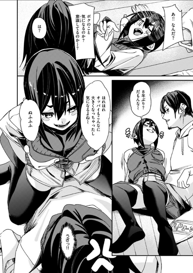 「ボクのこと気になるのか? 意識してるのか〜?」久しぶりに会った幼馴染。昔はほとんど男のコみたいだったのに、今ではすっかり色々でっかくなっていて……。ただでさえ理性が吹っ飛びそうなのに、大きくなったおっぱいを自慢げに披露してきたらもう……止まれない! ドロドロびちゃびちゃ性生活スタート!