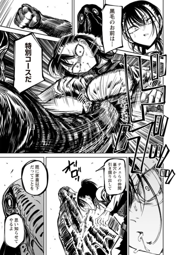 侵略者の手に堕ちた人類。捕らわれた女兵士は、仲間の眼前で凌●の限りを尽くされる!死に臨む彼女が最期に選んだ行動は――!?