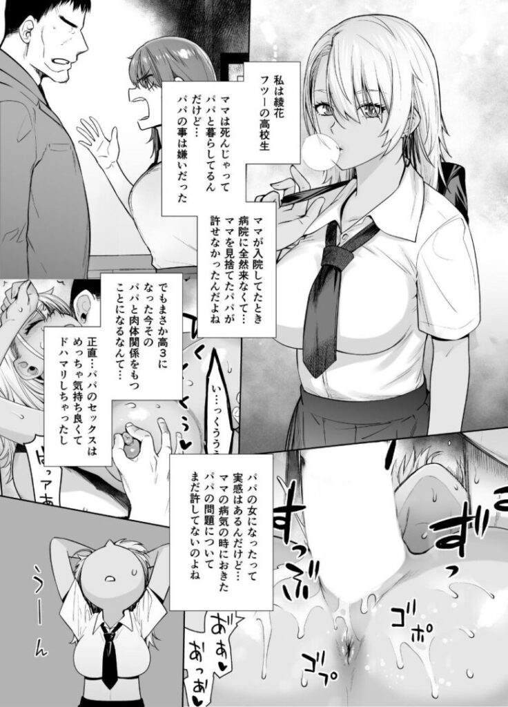 ◆あらすじギャル娘と父親の肉欲にまみれた日常が訪れる。父親の男らしい逞しい体に子宮までもが反応するようになってしまった綾香。誰にも内緒で、秘密の関係は熱く熱を上げ家の中で娘は父親に身も心も堕ちていく大嫌いだったはずの父親にとことん犯●れ、従順にいやらしくなっていく褐色ギャル娘漫画です。全40ページ—————————————-作・大塚子虎X・@kouchaya_kotora