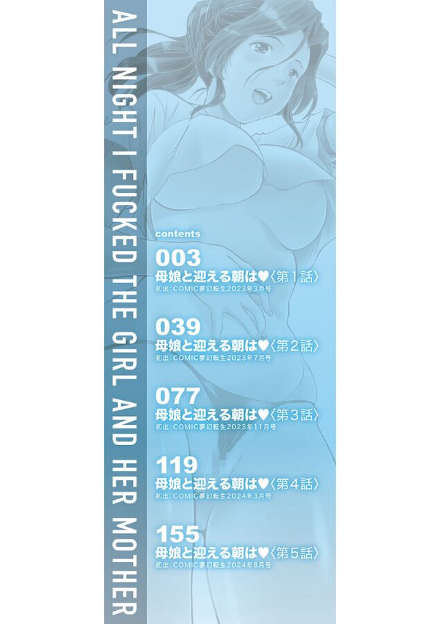 【第1話試し読み付き!!】母と娘のナマ膣穴に失神するまで射精しまくり!どうか未熟ワレメと艶熟アナを白濁汁で満タンにしてくださいっ!◆女上司の咲野と部下の倉部は肉体関係で、今日も咲野の家でセックス。だが、咲野が寝た直後、寝室に咲野の娘の紗可奈が現れる。発情した紗可奈は、眠っている母親のすぐそばで、倉部のチ●コを求めだして!?◆転校してきたばかりの女生徒・舞の家へ家庭訪問した教師・所田。学校では塩対応の舞が、家では別人のように積極的に所田を誘惑する!その正体は舞の母親(超童顔)だと判明! 小さな母親と、娘の舞も混ざって濃厚な母娘丼!◆引きこもりの灯樹は、兄と兄嫁の恵子、そして娘の陽生と同居している。だが灯樹は兄嫁たちの性生活に興味津々。夫婦部屋にカメラを仕掛け盗撮していた! しかし、その行為は恵子にも陽生にもバレていた!陽生と恵子は灯樹を逆誘惑。灯樹は母娘と爛れた関係に!おまたせしました! ちっちゃい系エロスの帝王・智沢渚優の新境地!蕩ける美味さの母娘丼!母娘ならべて失神&失禁するまで一晩中▼実用度保証付きのハードコア!【収録作品】母娘と迎える朝は▼〈全5話〉【電子書籍特典】・電子限定カバーイラスト複製原画・書店配布用特典イラスト