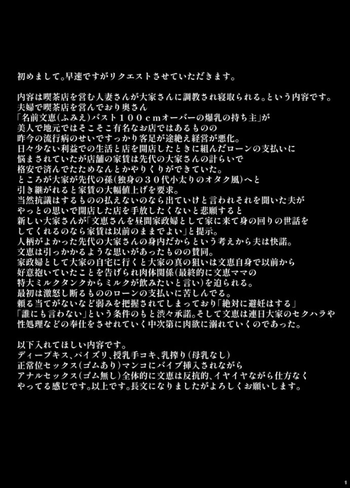 せぶんがーが支援サイトにて更新した過去の作品を再編した短編集です。本文74ページ(内ブランク、テキストページ計16ページ、本編58ページ)収録作品↓爆乳人妻が弱みを握られ家政婦兼性処理要員にされる投稿日:2022年9月17日不良の餌食になった新人爆乳婦警投稿日:2022年10月16日幼馴染ハーフ彼女のNTR調教完了ビデオレター投稿日:2022年11月4日続続続・年上チアリーダーの彼女を先輩のデカチンに寝取られる投稿日:2023年1月26日剣豪少女が鬼に返り討ちされ孕み袋いされる投稿日:2023年2月19日弱小プロダクションのアイドルが金持ち外国人に遊び感覚で孕まされる投稿日:2023年2月27日私立QOS学園投稿日:2023年5月28日