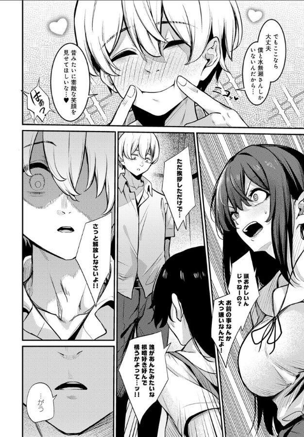 「キスも… 初めても… 私の大切なものが… こんな奴に…」目障りなクラスメイト・白石陸をいじめるJK・水無瀬澪。いつものように白石をいじめた後、帰宅途中に白石から襲われ、気を失い──。気づくと、拘束の上、監禁されていた。復讐されるかと思いきや、「水無瀬さんと愛を深めたいんだ…」と言う白石に初めての唇を奪われてしまう。絶望的な状況の中、絶対に負けないつもりで彼の要求を拒否していた澪。けれども、監禁から数日、抵抗する体力も尽きて……絶望カワイイで大躍進・やまもと先生が贈る、過激な監禁ハードFUCK!