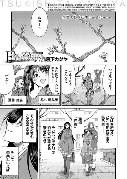 【第1話試し読み付き!!】ま…ママぁ…いっぱい射精たよぉ…▼まだカッチカチ▼ 寮長のオチ●ポすごいわァ▼F寮――そこはフタナリ女学生だけが住む学生寮!! フタナリ生徒たちは性欲が強くて問題を起こしてばかり!!そんなF寮に寮母さんがやってきた!!フタナリたちはスタイル抜群の寮母さんに欲情するが、寮母さんはあふれる母性でフタナリたちの性欲を解消していって!?おまたせしました!!個性ゆたかなフタナリ女子校生たちが寮母(ママ)の子宮にアツーイ濃ユーイキンタマ汁を射精しまくり!どんな美人教師もJKもケモノになって汗だく交尾!サオ付き女子校生令和最新版!!フタナリ漫画の専門家・月下カグヤが描く青春と感動の学園ふたなり物語!!電子書籍専用特典として、カバーイラストの複製原画と、紙書籍時の書店用特典イラストを収録したコンプリート版だっ!【収録作品】F寮の寮母さん〈第1話〉F寮の寮母さん〈第2話〉F寮の寮母さん〈第3話〉その後のF寮の寮母さんあとがき【特典】・書店用特典イラスト・カバーイラスト複製原画