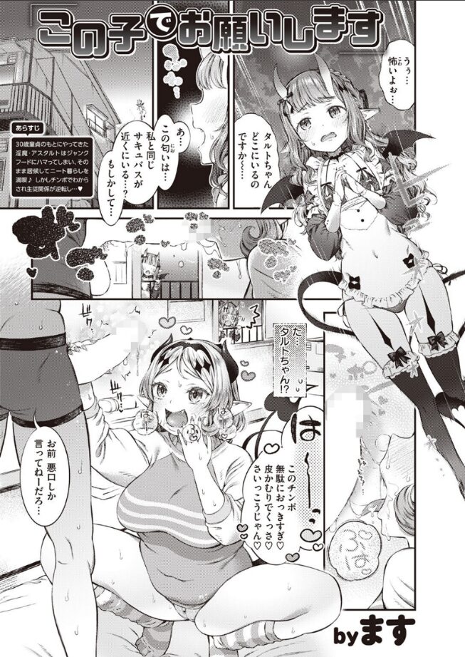 「あ この覗き見オナニーして潮吹いてたのが私のルームメイトね」親友のアスタルトを心配して人間界へやって来た処女サキュバスのレビ。人間を見下していた彼女がすっかりオナホにされている様子にショックを受けるが、アソコをイジる指は止まらず……。見かねたアスタルトから処女喪失を促され、華奢な身体におっきなつよつよチ●ポをブチ込まれる♪